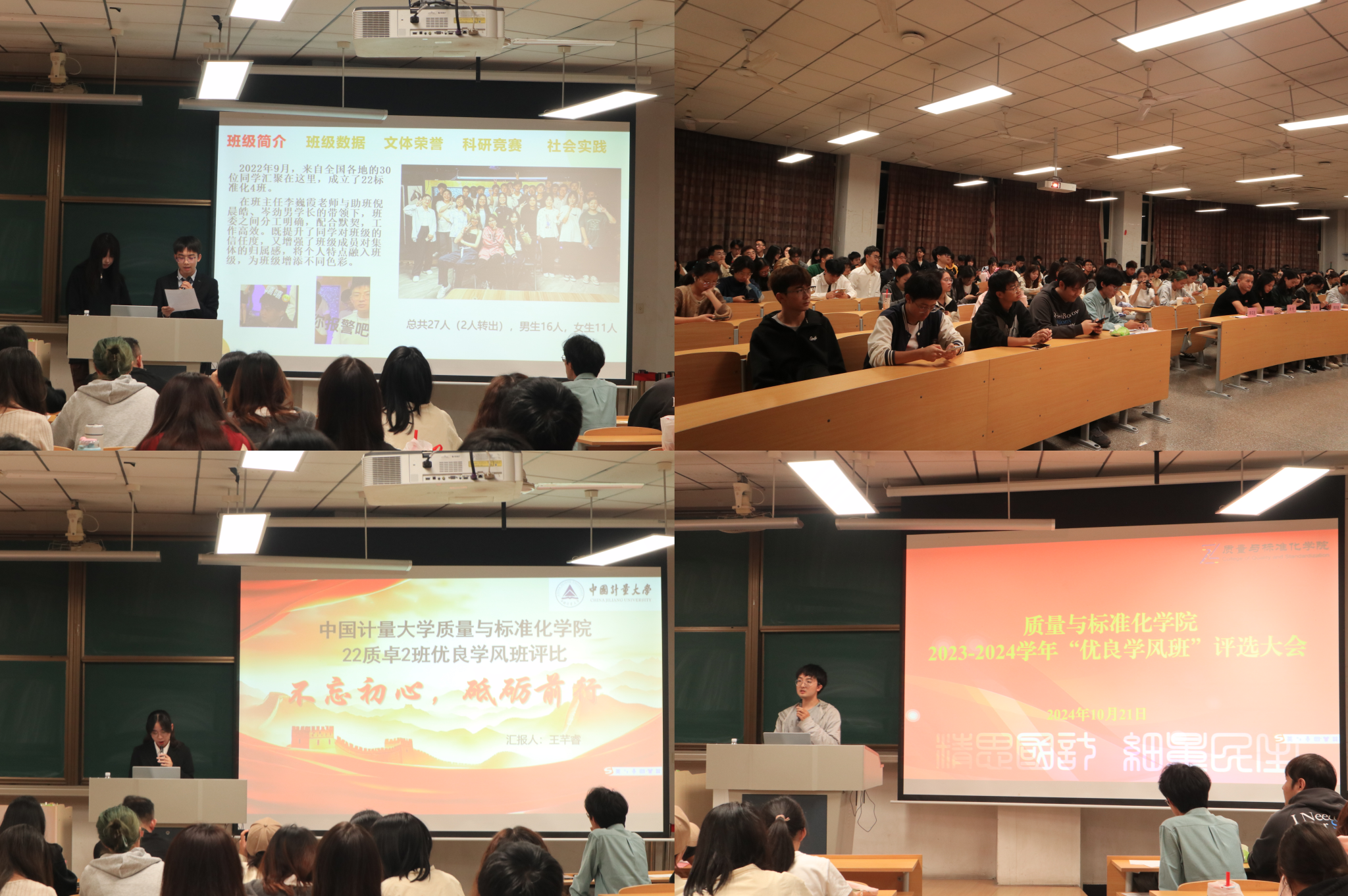优良学风,犹如激励学生奋发向前、努力成才的强大精神引擎。为切实推进学院学风与班风建设,营造浓郁良好的学习氛围,10月21日晚,质量与标准化学院2023-2024学年“优良学风班”评选大会在环宇楼T101教室举行。