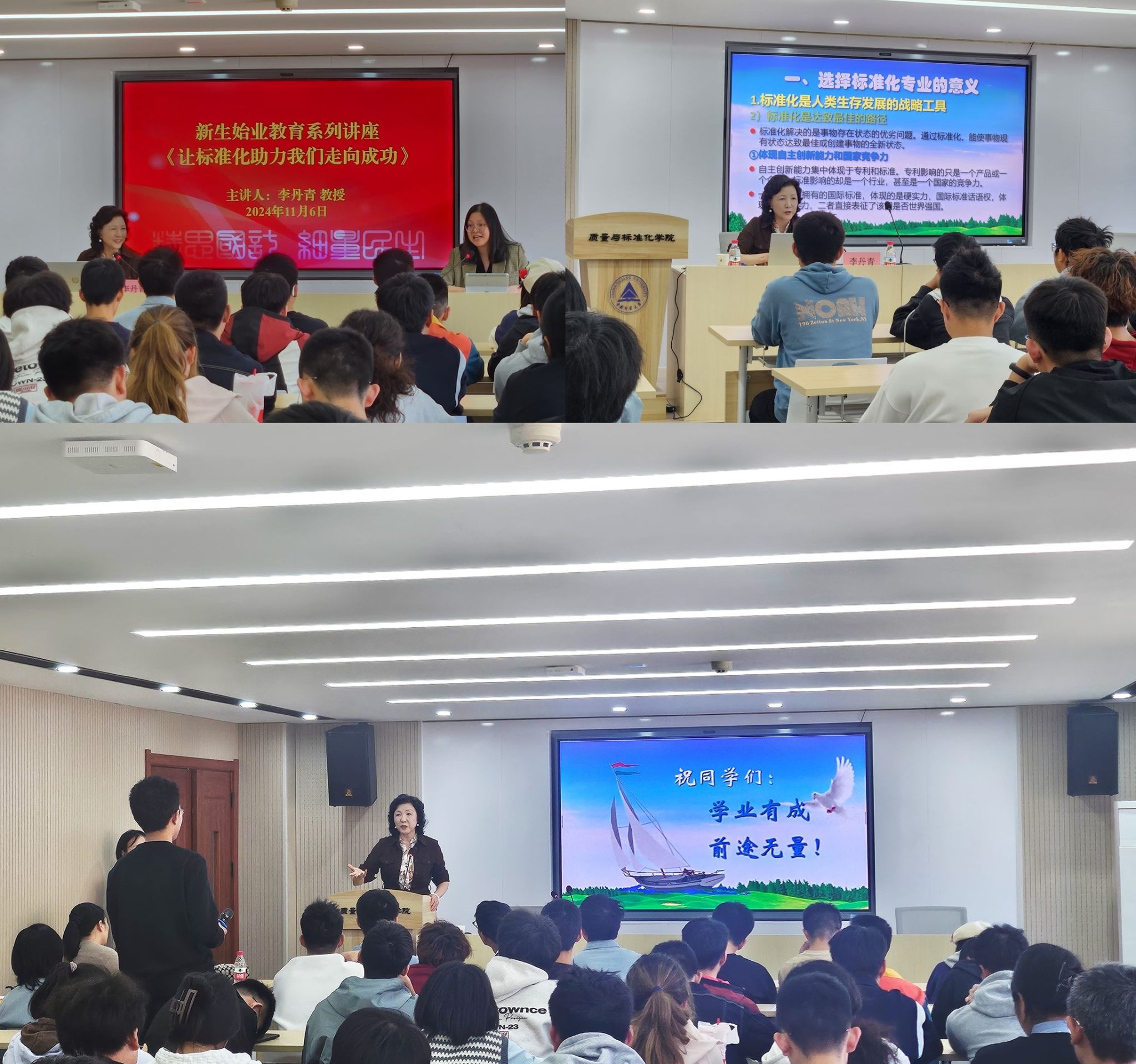 始业教育不仅是大学教育的开篇之章,更是强化学生思想道德建设、助推学生全面成长的关键环节,本次活动也是我院关工委落实“五老”队伍建设,发挥五老优势的重要举措。11月6日,质标学院特邀原标准化学院院长李丹青教授为新生主讲《让标准化助力我们走向成功》。活动由学院党委书记李佳主持,副院长刘欣、标准化工程专业负责人颜鹰及专业教师代表出席,70余名24级标准化工程专业新生参加。