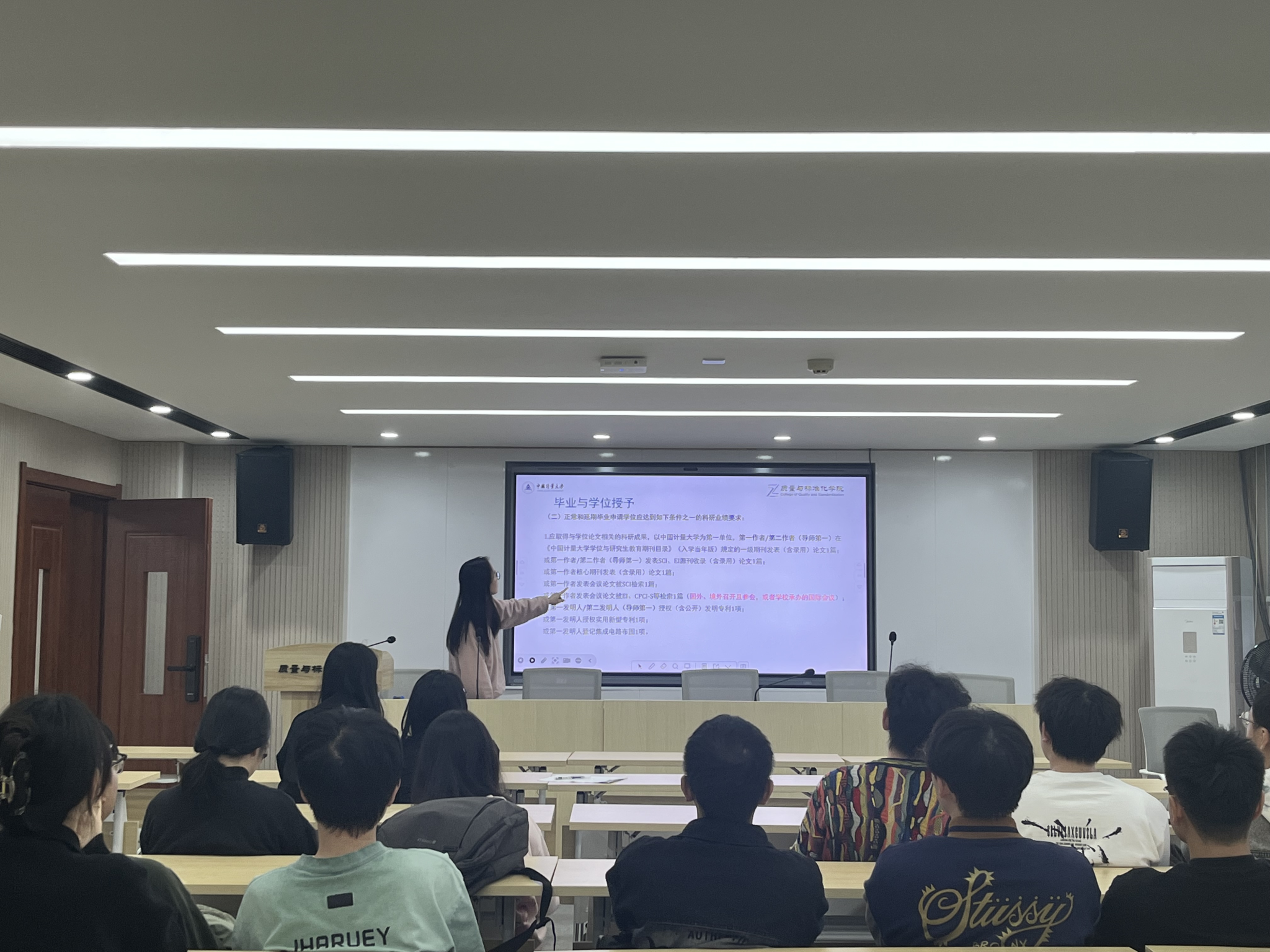 为加强研究生培养过程管理,明确学业要求,助力研究生顺利完成学业,10月29日下午,质量与标准化学院在弘德楼609会议室举行面向2023级研究生的学业指导大会,研究生秘书姚蕾、辅导员舒晴出席会议。
