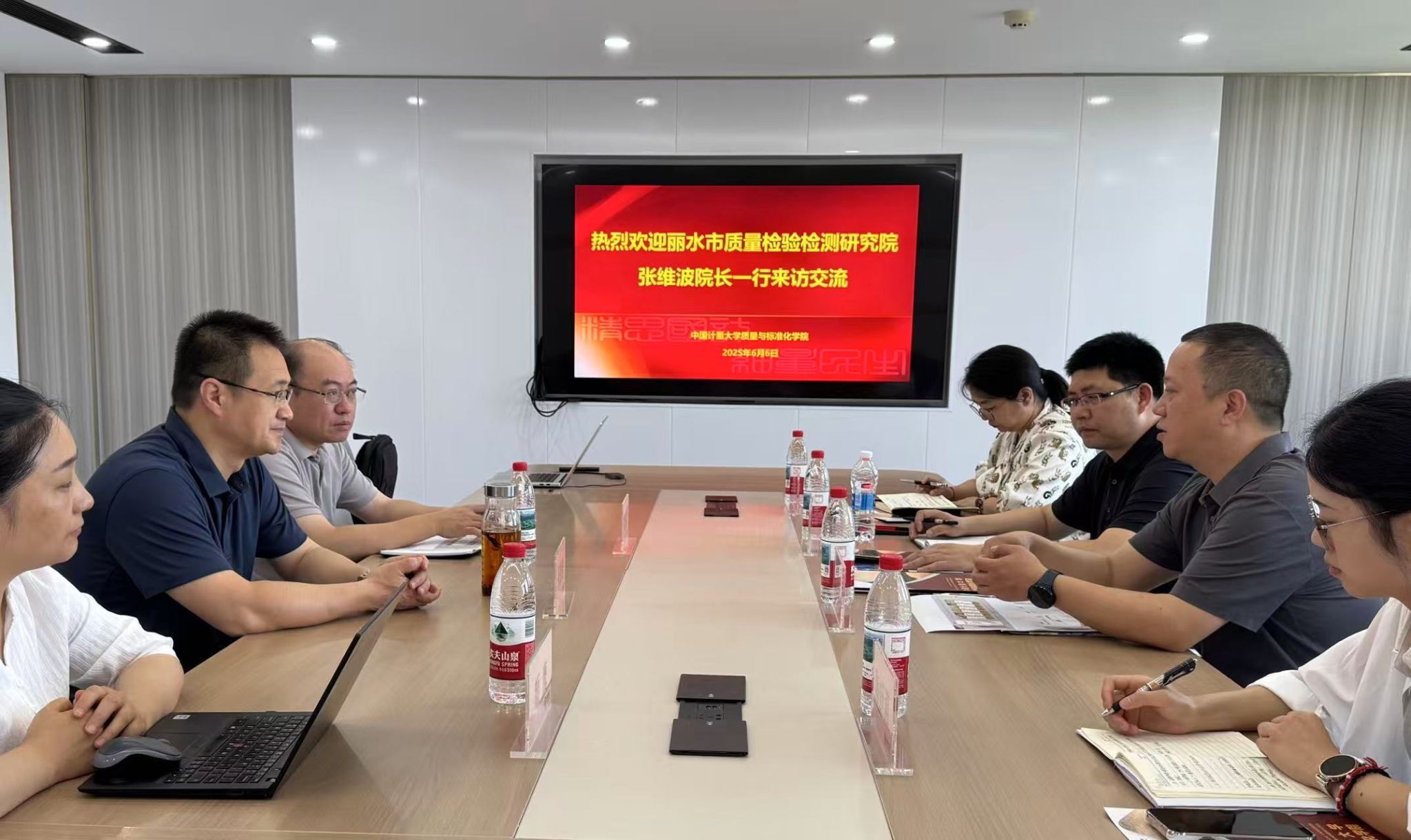 6月6日上午,丽水市质量检验检测研究院张维波院长、陈俊副院长、应跃跃主任一行来访中国计量大学质量与标准化学院调研交流,学院院长张朋越、标准化工程系系主任施进、专业负责人颜鹰及相关专业教师参加座谈交流。
