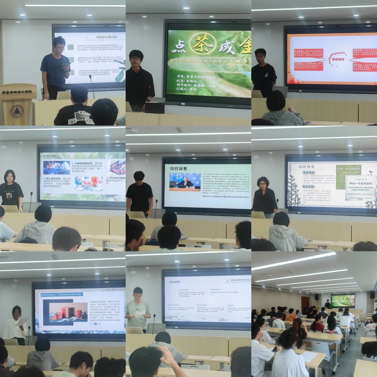 其中,“点茶成金”团队以标准化专业知识赋能松阳茶产业发展,聚焦茶叶质量追溯体系建设与品牌路径优化;“质标有你”团队面向全国优秀校友开展访谈调研,构建从“成长—选择—发展”的路径图谱,为在校生成长导航;“潮涌红岸·塘韵新程”团队则依托海潮文化驿站资源,探索“红色文化+科技体验+青年参与”的创新模式,为文化传承注入新活力。除此之外,还有多支团队也结合自身专业优势,分别聚焦于社会服务、科普推广、城乡建设等不同维度展现质标学子的担当与智慧。