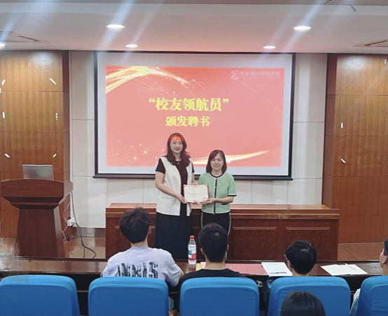 学院党委副书记吴昕为房珏颁发“校友领航员”聘书,并对校友心系母校、助力学子成长表示衷心感谢。她勉励同学们追随榜样的足迹,夯实专业根基,锚定未来方向,不负大学韶光。
