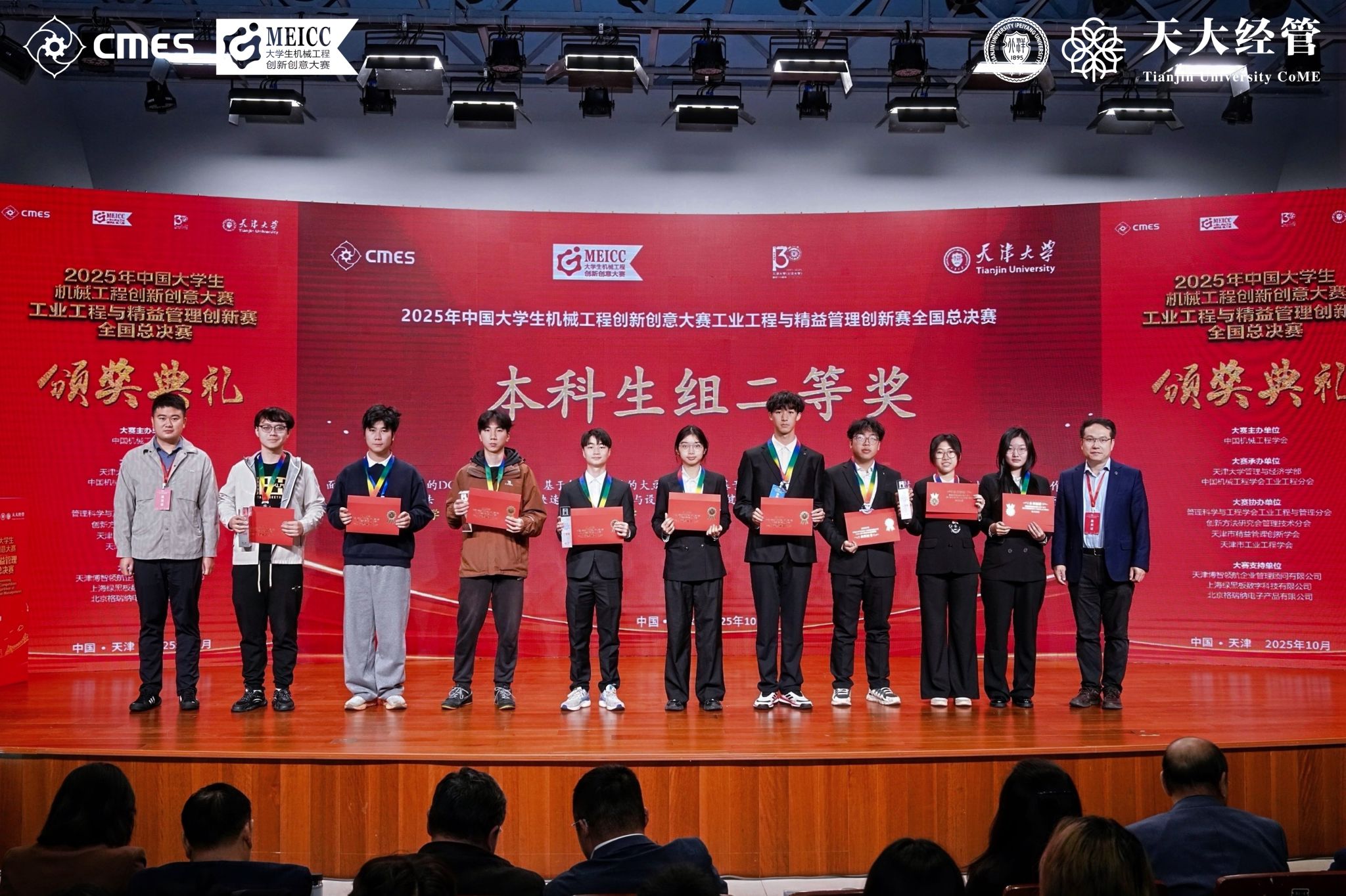 10月24日至26日,2025年中国大学生机械工程创新创意大赛工业工程与精益管理创新赛全国总决赛在天津大学举行。质量与标准化学院工业工程专业学子表现优异,荣获全国二等奖1项、三等奖1项,取得历史性突破。