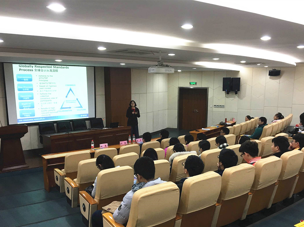 在这次的讲座中,3位专家根据自身对标准化的理解和多年的从业经验,详细介绍了IEEE标准协会的发展历史、社会功能、运行机制和专业职能,分享了IEEE在一些热点技术领域的标准动态,并通过生动详实的案例,立体展示了IEEE标准的开发流程,同时还着重介绍了IEEE在标准化教育领域中开展的工作,展示了其在该领域的庞大资源,热情邀请师生们参与其中,共享作为标准化从业人员的乐趣。