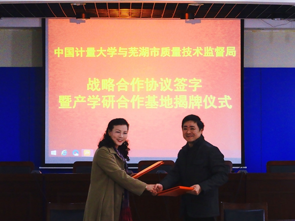 11月30日,我校与芜湖市质量技术监督局战略合作协议签订仪式暨产学研合作基地揭牌仪式在芜湖市质监局隆重举行。芜湖市质监局党组书记、局长周光、直属分局局长查为民等全体班子成员,我校正校级领导吕进、标准化学院院长李丹青,标准化学院党总支副书记(主持工作)陈刚等出席了签字仪式,仪式由直属分局局长查为民主持。