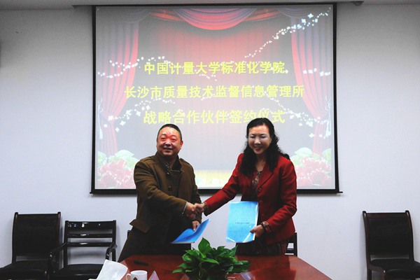 11月17日,标准化学院院长李丹青,主持工作的党总支副书记陈刚一行在长沙与该市质量技术监督信息管理所签定战略合作协议,长沙市质监局副局长耿良安、标准化处处长刘典军、副处长谈奕麟等出席签约仪式。
