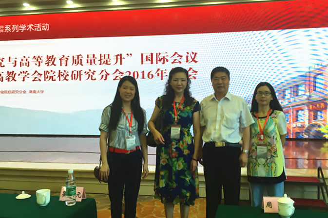 7月9日-10日,由中国高等教育学会院校研究分会与湖南大学联合主办的“院校研究与高等教育质量提升”国际会议暨2016年中国院校研究年会在湖南长沙隆重举行,中国高等教育学会会长瞿振元教授,中国、欧洲、美国、日本等国家和地区的高等教育学会院校研究会会长等近600位专家学者出席这一学术盛会,中国院校研究会常务理事我校标准化学院院长李丹青教授一行3人应邀参会做主题发言,并分别与瞿振元、刘献君会长合影留念。