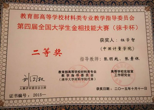 10月10日,由教育部高等学校材料类专业教学指导委员会、高等学校实验室工作研究会联合主办的第四届全国大学生金相技能大赛在昆明理工大学莲华校区举行,我院材料标准化方向三名学生与来自清华大学、浙江大学、上海交通大学、西安交通大学、天津大学、武汉大学等985、211高校的学生同场竞技、喜获佳绩。浙江省参赛的还有浙江工业大学和台州学院代表队。