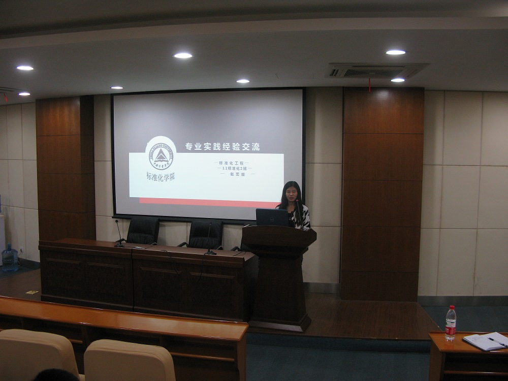在庆祝第45个世界标准日之际,作为我国标准化人才培养摇篮的中国计量学院标准化学院,在通过举办系列活动来宣传标准化在经济社会发展中的重要作用,提高公众的标准化意识的同时,更不忘向社会展示标准化工程专业人才的培养成效。标准化工程专业在我校、我省乃至我国都具有唯一性和创新性。经过三年多专业人才培养的实践探索,已经结出丰硕成果。为检验标准化专业人才培养取得的成效,标准化学院在10月15日晚举办了第一届“标准化工程专业社会实践经验交流会”。李丹青院长、陈刚书记、张朋越副院长出席会议,教务处张华副处长莅临本会。标准化学院全体学生参加了会议。经验交流会由院长助理顾兴全主持。
