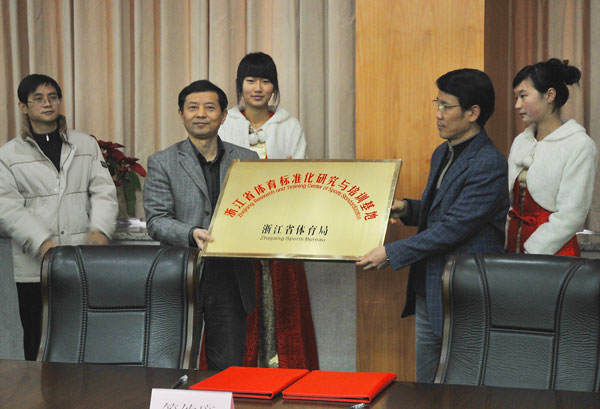 我校建有国内唯一的标准化学院,学院下设“运动与休闲标准化研究所”,具有从事体育、休闲、旅游等有关产业发展标准化问题的研究和相关教学、培训工作的经验和实力。学校与省体育局共同制定的《浙江省体育服务业示范企业标准与测评细则》已经开始实施。近期,双方还将合作制订《浙江省体育服务业标准化”十二五”发展规划》。