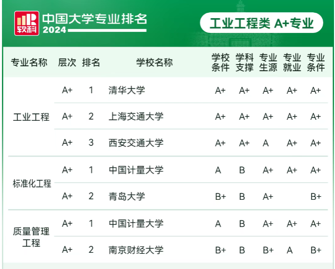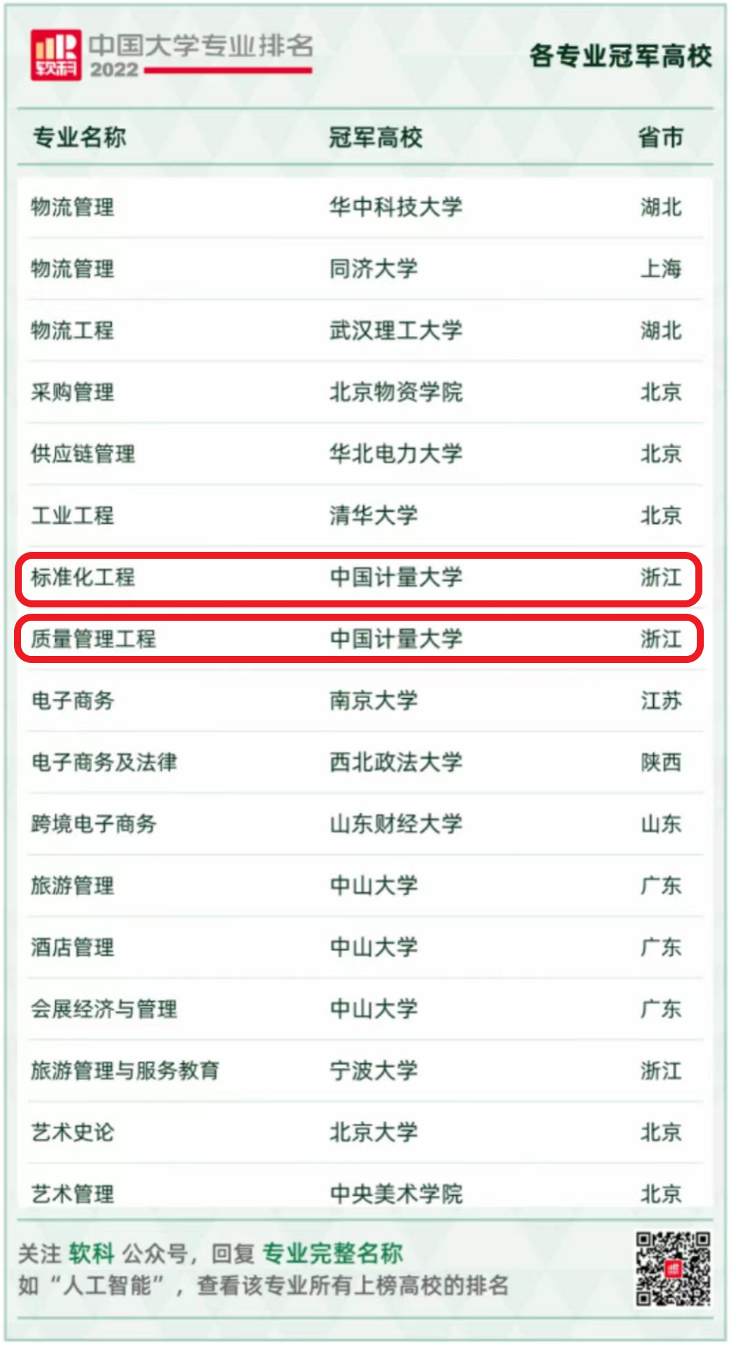近日,高等教育专业评价机构软科发布了“2024年软科中国大学专业排名”,排名包括810个专业,涉及93个专业类、12个专业门类。据榜单显示,中国计量大学质量与标准化学院标准化工程、质量管理工程专业再次荣膺全国第一,两个专业均获评A+。