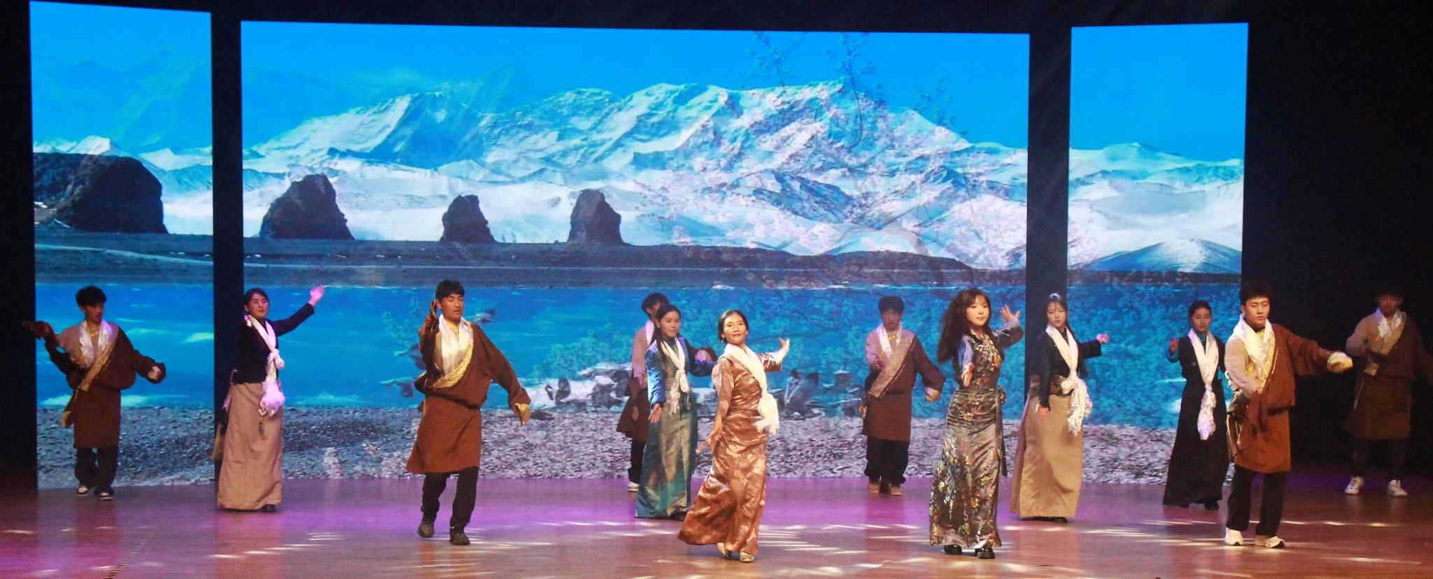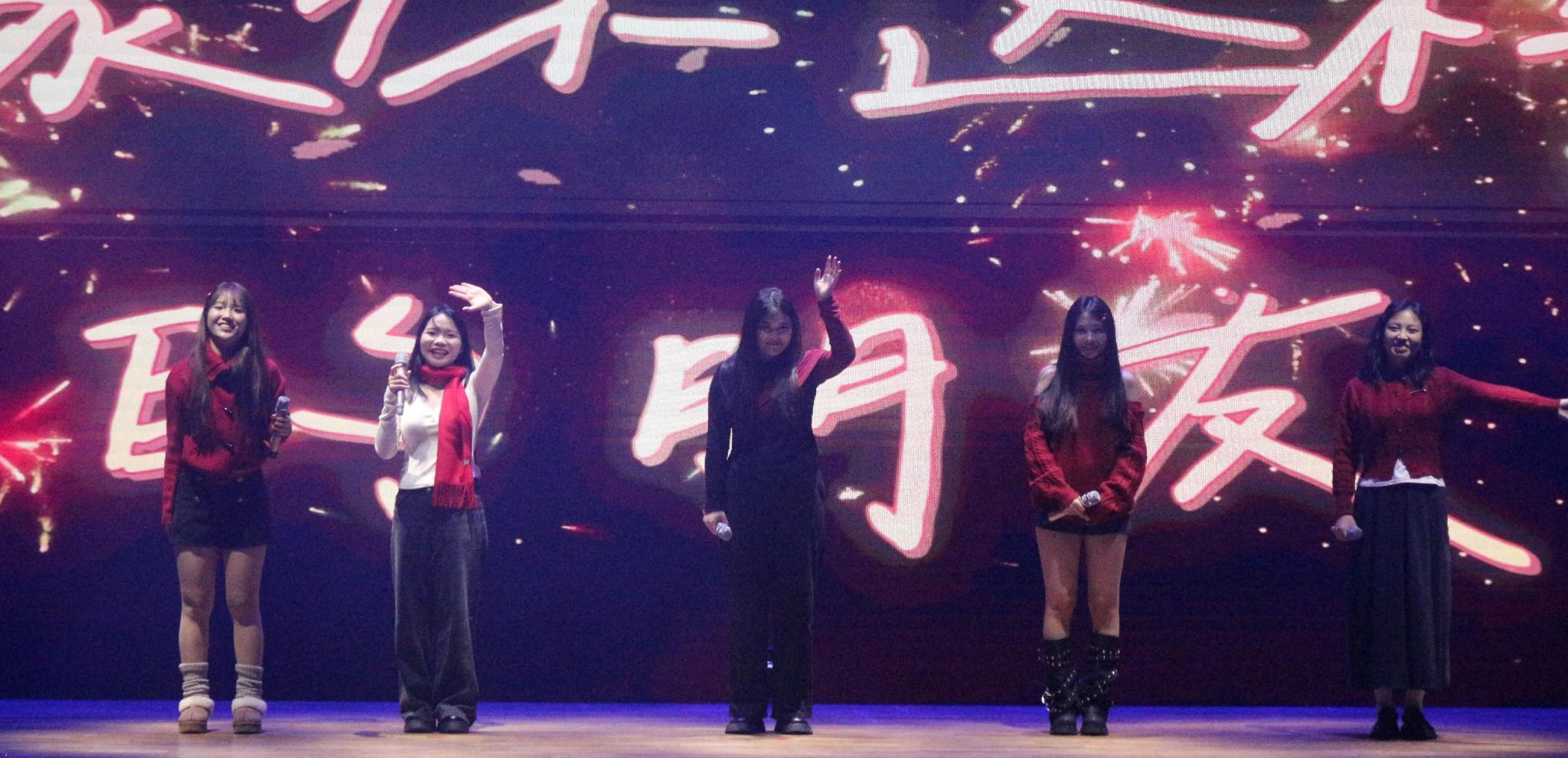 晚会上,精心编排的节目轮番上演,来自不同专业的管工学子为观众呈现一场视听盛宴。古韵民乐社一曲合奏《伯虎说》拉开帷幕,StarT的团体街舞《finesse》点燃全场热情。念初社的配音节目《新生,你来啦!》尽显语言创造力;校武术队的《传统武术》刚劲有力。标准化工程专业的旦增曲增、格桑普赤等同学以藏族舞蹈《云端藏域》展现了雪域高原的独特魅力。工商管理专业的阿尔祖古丽、古丽茹合萨、苏比努尔同学则带来热情洋溢的新疆舞蹈《晨曦中的玫瑰》。