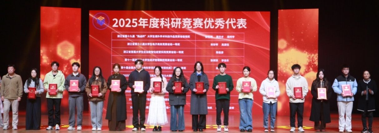 晚会伊始,学院党委书记黄乐富致辞,向2025级新生表达诚挚欢迎与殷切期望。他提到“管工因改革而生,你们因未来而来。愿你们在这里既学有所专,更学有所成;既扎根当下,更面向未来;既成就自我,也共建家园。”随后举行的颁奖典礼上,余晓院长等学院领导为获奖集体和学生颁奖。依次表彰了获得国家奖学金、浙江省政府奖学金的学生、校级优良学风班代表、科研竞赛优秀团队以及团学活动突出个人,有效树立了管工学子勤学笃行、全面发展的生动榜样。