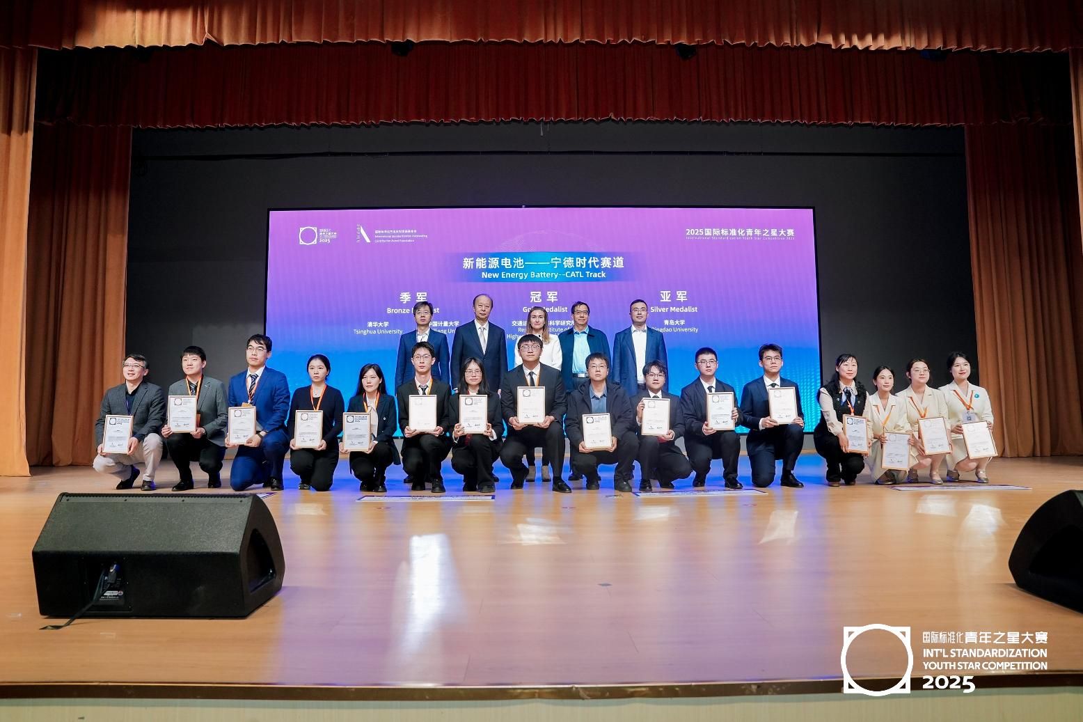 在宁德时代新能源科技股份有限公司主办的 “新能源电池” 主题赛道,竞争同样白热化。我校 23 级标准化工程 3 班邹子涵、王婧与 23 级工商管理 1 班张童组成的团队,在管工学院张静博士的指导下,紧扣新能源电池领域标准化发展需求,将课堂所学的标准化理论知识与产业实际深度结合,提交的标准提案兼具理论深度与实践价值,充分展现了团队扎实的专业功底、敏锐的创新意识与精准的问题解决能力。经大赛评审委员会严格评定,该团队与清华大学代表队并列斩获该赛道全国季军。