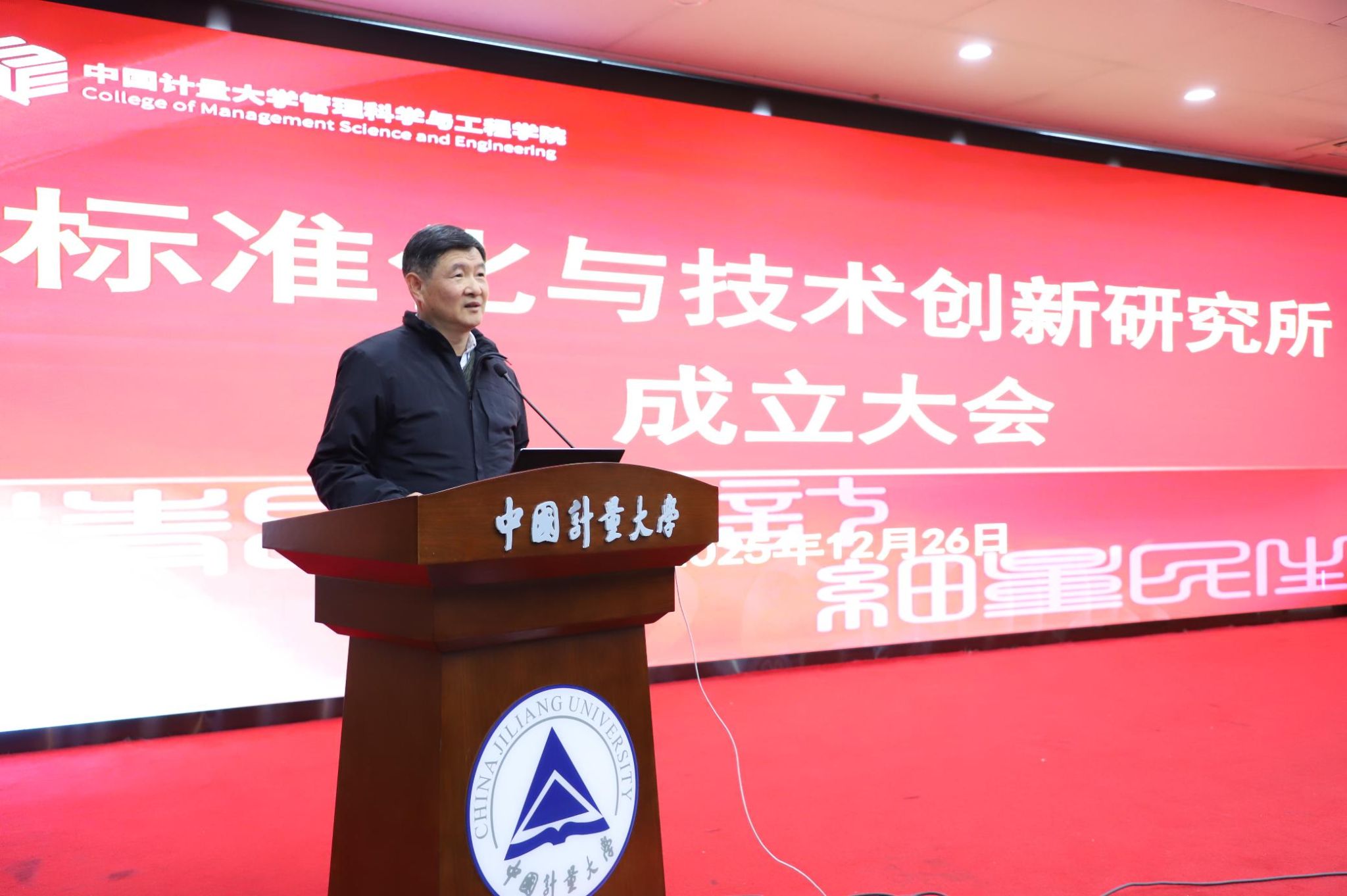 会上,原校长宋明顺教授深情回溯我校标准化学科的发展历程。他指出,标准化与技术创新研究所的成立,顺应了国家高质量发展战略对“标准引领、创新驱动”的迫切需求,具有鲜明的时代意义和重要的战略价值。他充分肯定研究所组建的前瞻性与必要性,勉励全所教师勇担时代使命,把研究所建设成为国内有影响力、国际有显示度的高水平学术平台。余晓院长宣读任命文件,并代表学院致辞。她指出,标准化与技术创新研究所的成立是服务高质量发展的重要举措,希望教师立足“标准化”特色,结合各自专长,有效融合、协同发力,为学院发展注入新动能。