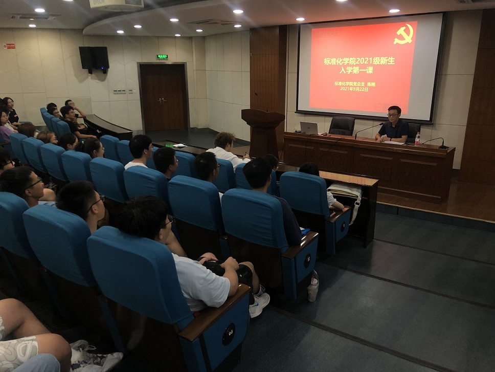 9月23日,标准化学院在环宇楼T302教室开展2021级新生入学第一课,院党总支书记陈刚主讲。