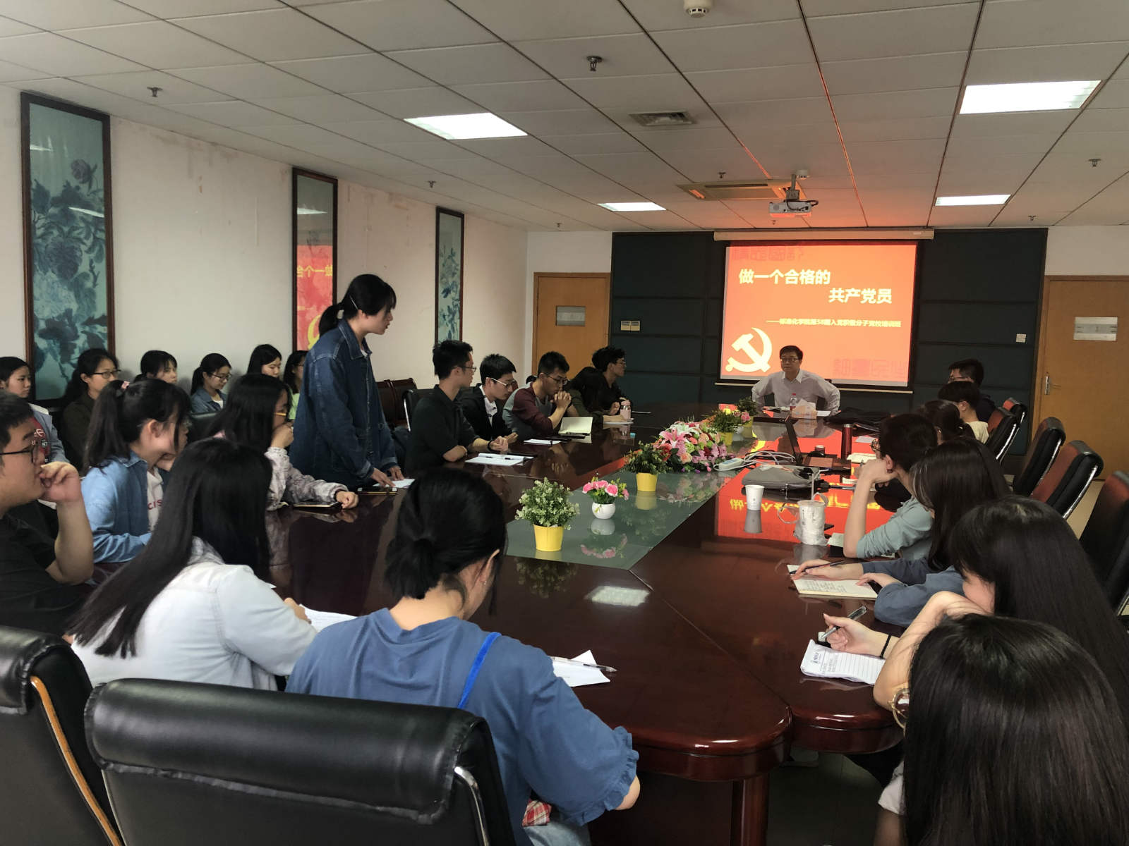陈刚书记以“做一名合格的共产党员”为主题,围绕端正入党动机、按党员的要求严格要求自己、严格履行入党手续、保持共产党的先进性和纯洁性四个方面讲述。