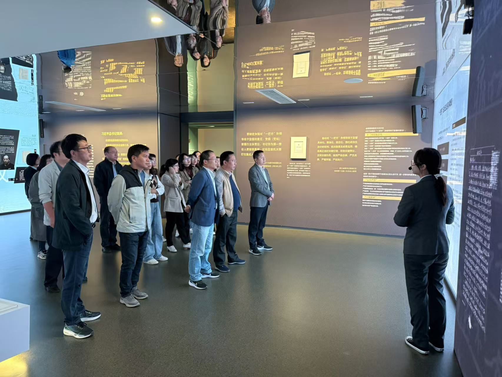 浙江省法纪教育基地由省、市、区三级纪委、检察、司法等十家单位联合共建,杭州市萧山区法纪教育中心具体负责管理。基地拥有展厅、警示电教片、监狱实时监控、服刑人员现身说法、法纪专家大讲堂、廉政资料书库以及网站、微信、微博等教育载体,提供多样化的教育形式,是全国较早依托监狱资源开展党员干部法纪教育的基地之一。在基地讲解员的引导下,大家先后参观了《清廉浙江 勇立潮头》《以案为鉴 警钟长鸣》《以严明的纪律推进党的自我革命》三个专题展,全面回顾党的纪律建设百年历程,深入了解新时代推进全面从严治党、党风廉政建设和反腐败斗争取得的成就,以及纵深推进清廉浙江建设的成效。随后观看了党的十八大以来浙江省查处的60余起党员干部违纪违法典型案例和廉政警示教育片,并通过监控实时了解服刑人员教育改造的场景。