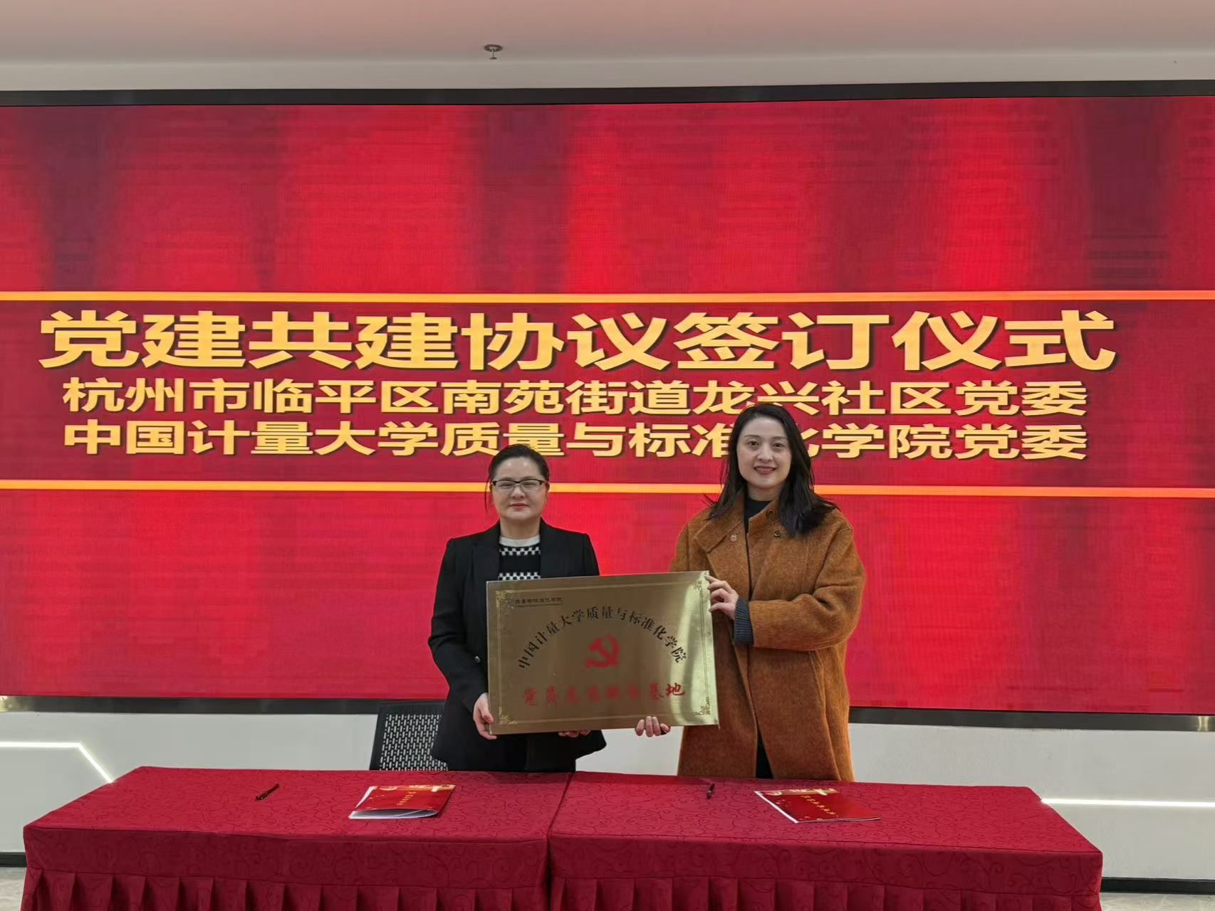 龙兴社区党委书记毛丽娟对师生的到来表示热烈欢迎。她向师生们介绍龙兴社区于2022年5月成功创建浙江省首批未来社区。为守好红色根脉,夯实基层党建堡垒,龙兴社区以“争星晋位”行动为牵引,通过社区现代化建设,全面提升基层治理社会化、法治化、智能化、专业化水平。吴昕表示,通过共建“党员志愿服务基地”,充分发挥校地双方在人才、信息、实践平台等方面的优势,结合学院“标准科普进万家”党员志愿服务特色文化活动,为社区和中心提供标准化建设等方面的特色志愿服务,培养大学生党员的社会责任感和服务奉献精神。最后,双方在达成共识的基础上签订党建共建协议并授牌“党员志愿服务基地”。