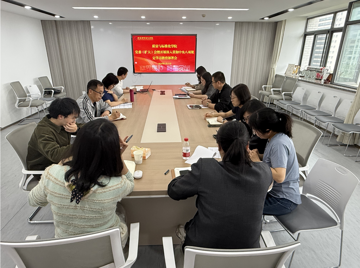 3月27日,质标学院召开党委(扩大)会议暨深入贯彻中央八项规定精神学习教育动员部署会,认真学习贯彻习近平总书记关于深入贯彻中央八项规定精神学习教育的重要讲话和重要指示精神,启动部署学院深入贯彻中央八项规定精神学习教育。学院党委书记李佳主持会议,学院领导班子成员、各党支部书记、党政办主任、学工主管、组织员等参加会议。