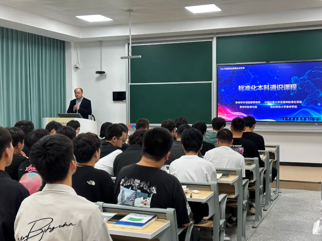 标准化课程的开讲,是泰州市贯彻落实国家标准委、教育部、科技部、人力资源社会保障部等五部门联合印发《标准化人才培养专项行动计划(2023—2025年)》提出的标准化人才教育体系建设行动、加强标准化普通高等教育的切实举措。泰州市将聚焦区域产业所需,充分依托我校标准化工程专业标准化课程体系建设优势、泰州市标准化院综合技术服务能力,建立与南京师范大学泰州学院的常态化本科标准化课程培养模式,以电气工程、化学与生物、法学等学科为试点,储备式建立本地化“学科+标准”本科人才培养机制,持续夯实标准化服务新质生产力的人才基础。