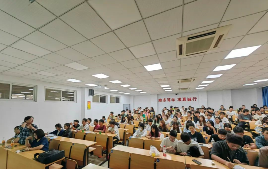 宋韵老师则严肃而温和的提醒了同学们在大学学习生活中要有忧患意识,强调了需要注意的科目和要点。