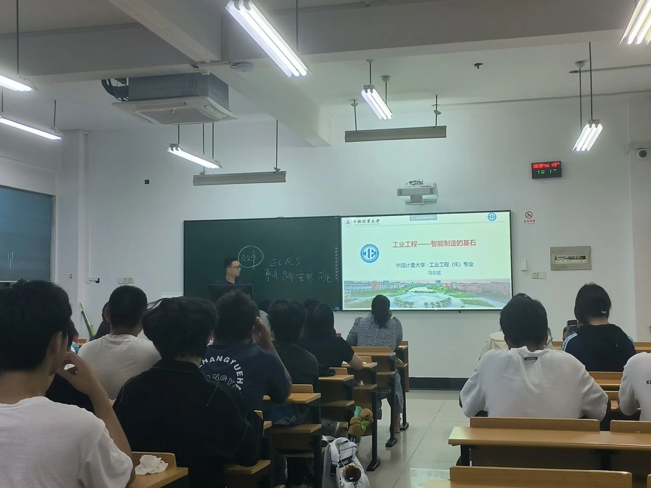 而后风趣幽默的马老师向新生们详细阐述了工业工程的基本理念以及所需的思维能力。他以迪士尼和富士康等生动的实例,让新生们直观地理解工业工程思维在各个领域的实际应用。此外,马老师还分享了往届优秀毕业生如李宁学长和杨丽艳学姐的卓越发展与工作成就,帮助新生们对未来的职业发展有了更深入的认识和期待。相信这样的分享不仅可以增加了新生对专业的理解,也能激励他们积极规划自己的未来发展。