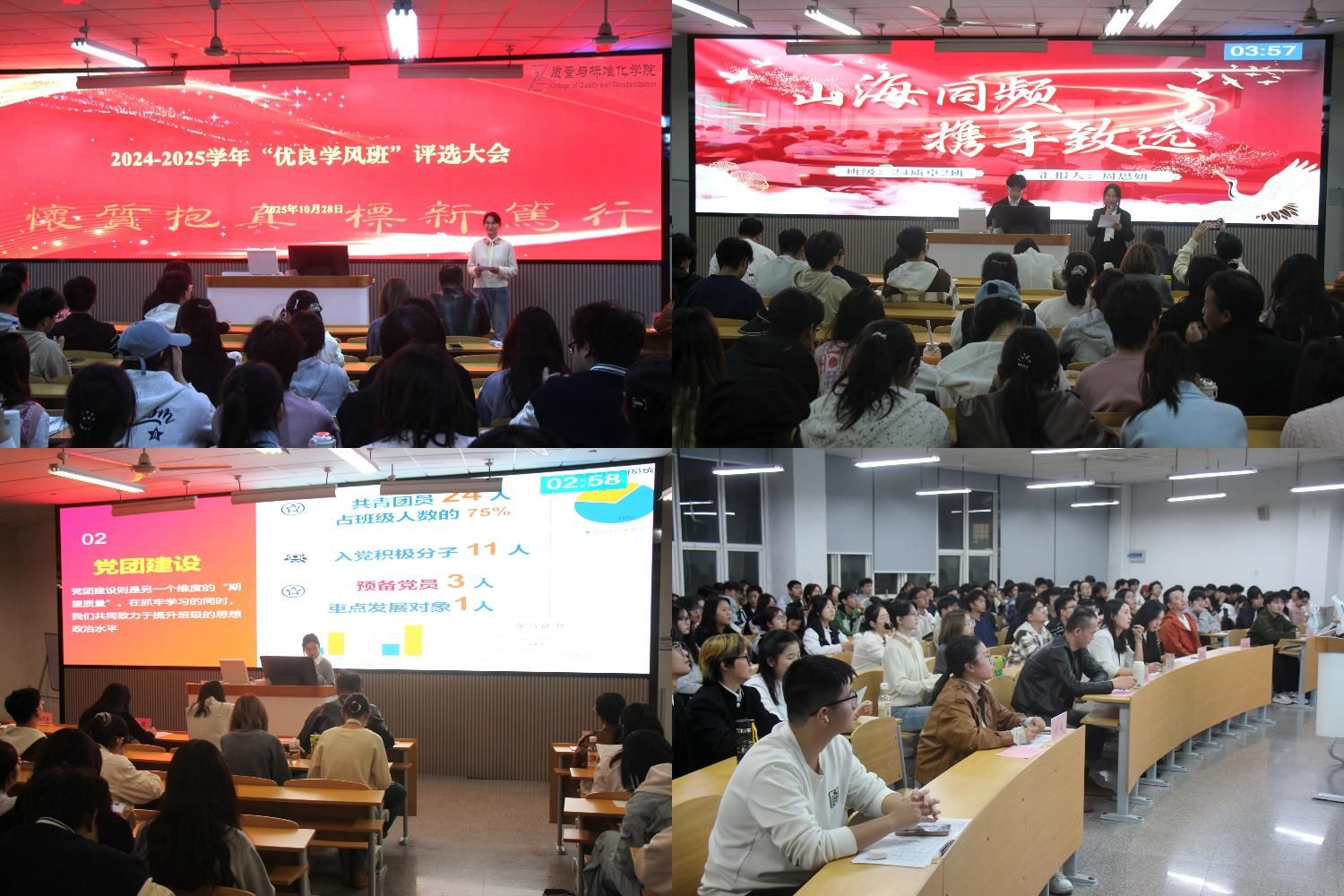 10月28日晚,学院在环宇T202举办2024-2025学年优良学风班评选大会。本次共有来自2023级、2024级的18个班级参加答辩,各班围绕组织建设、学业发展、班风班纪、寝室文化、科研竞赛等方面,系统展示班级建设成果。现场交流充分、气氛热烈。经过综合评审,最终评选出9个院级“优良学风班”,并推荐23质卓1班角逐校级特优学风班。此次评选既是成果展示,更是一次学风理念的深入交流,进一步强化了先进引领作用。