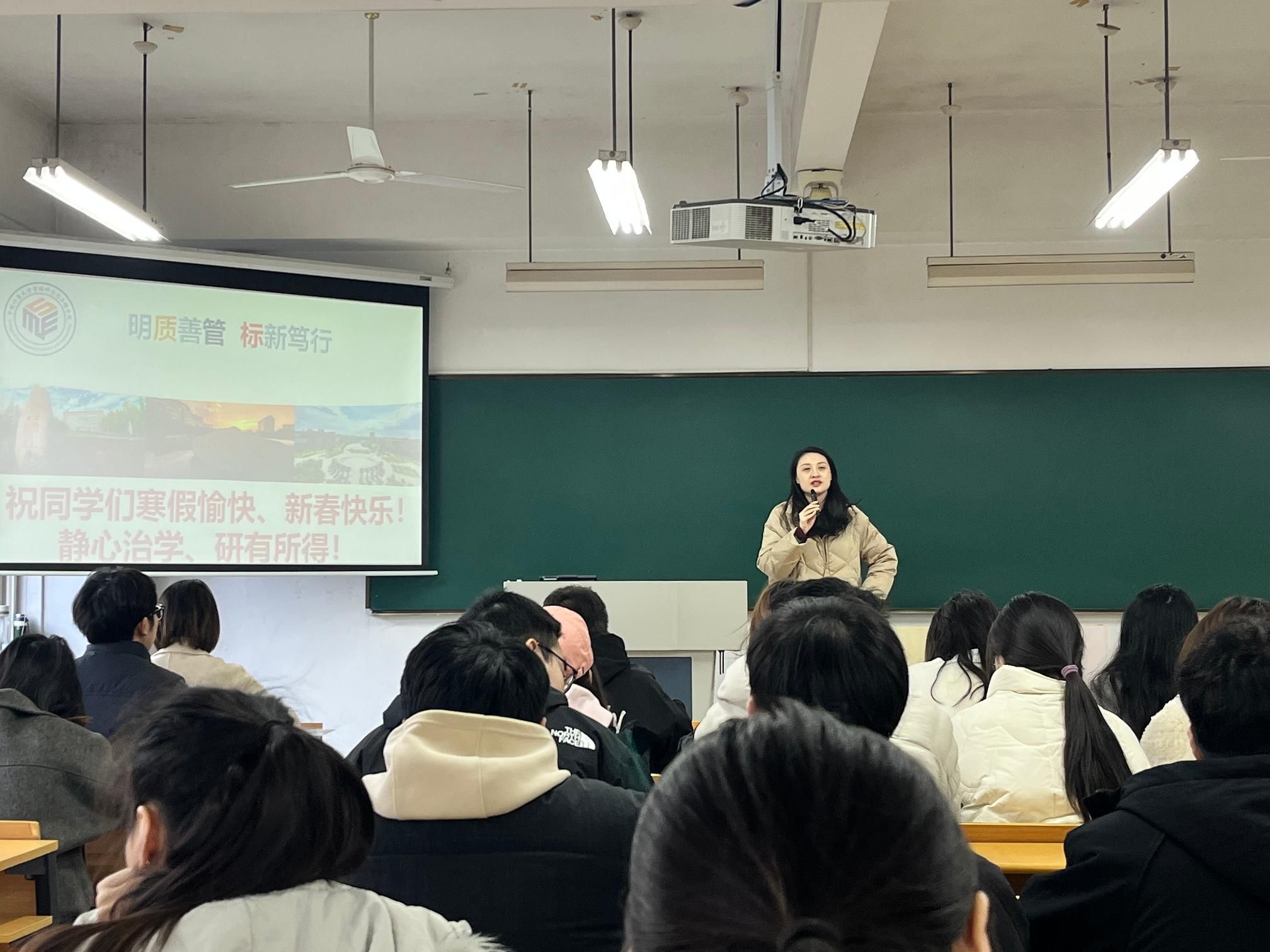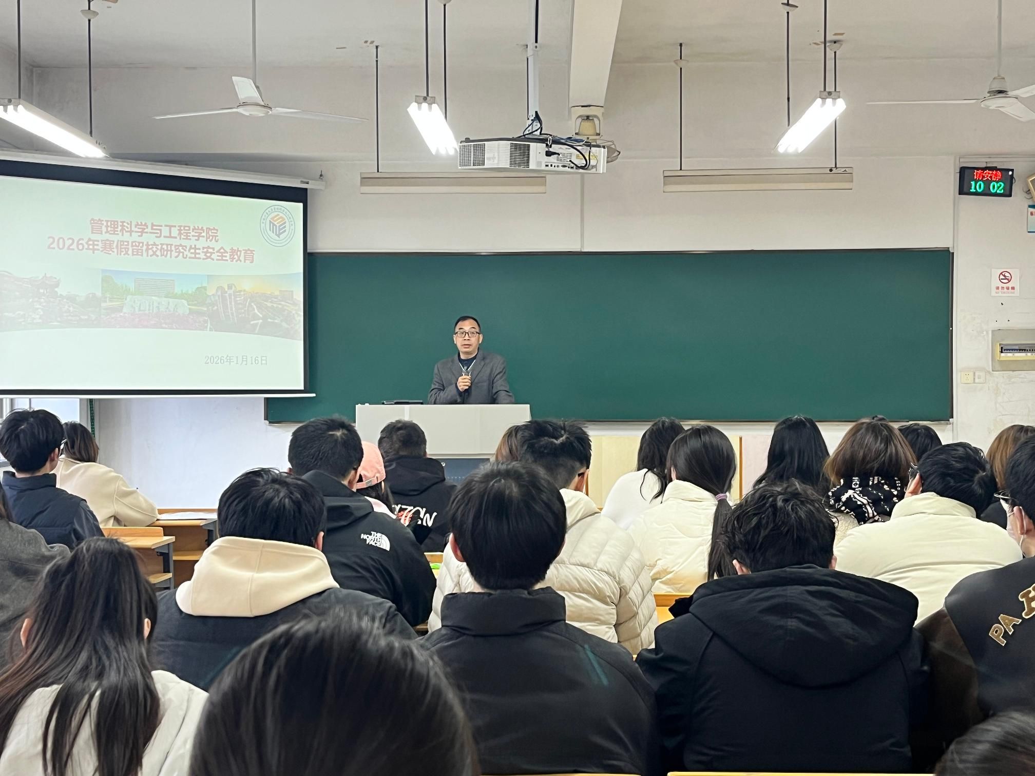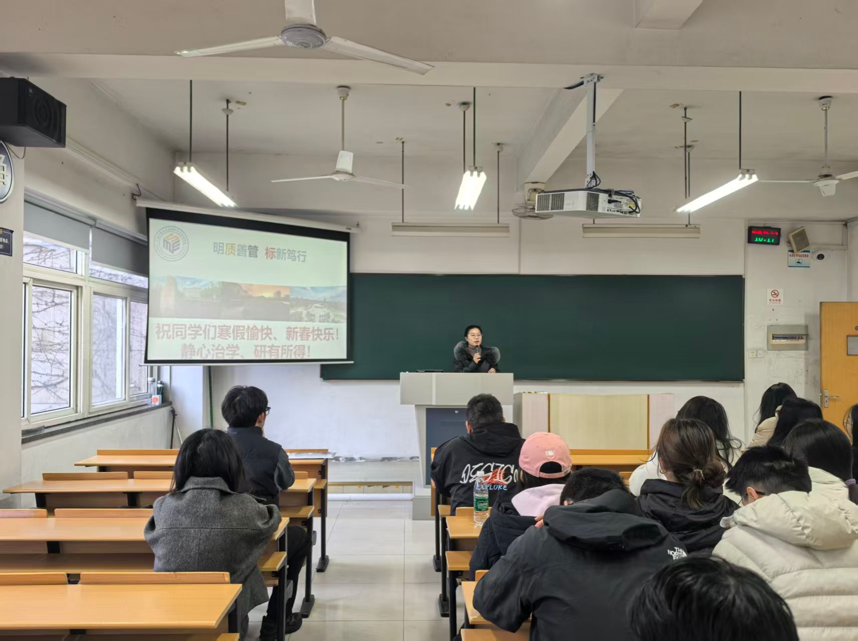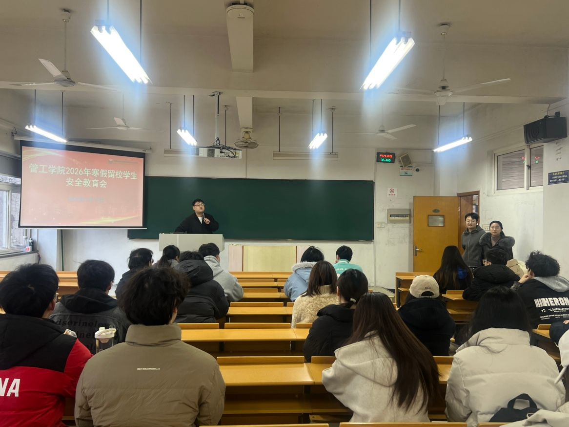 为深入落实学校寒假安全工作部署,切实保障留校学生度过平安、有序、充实的假期,1 月 16 日上午,管工学院在环宇楼 D102 分场次召开本研学生寒假留校安全教育大会。副院长徐新胜、副书记吴昕、辅导员及全体留校学生参会。