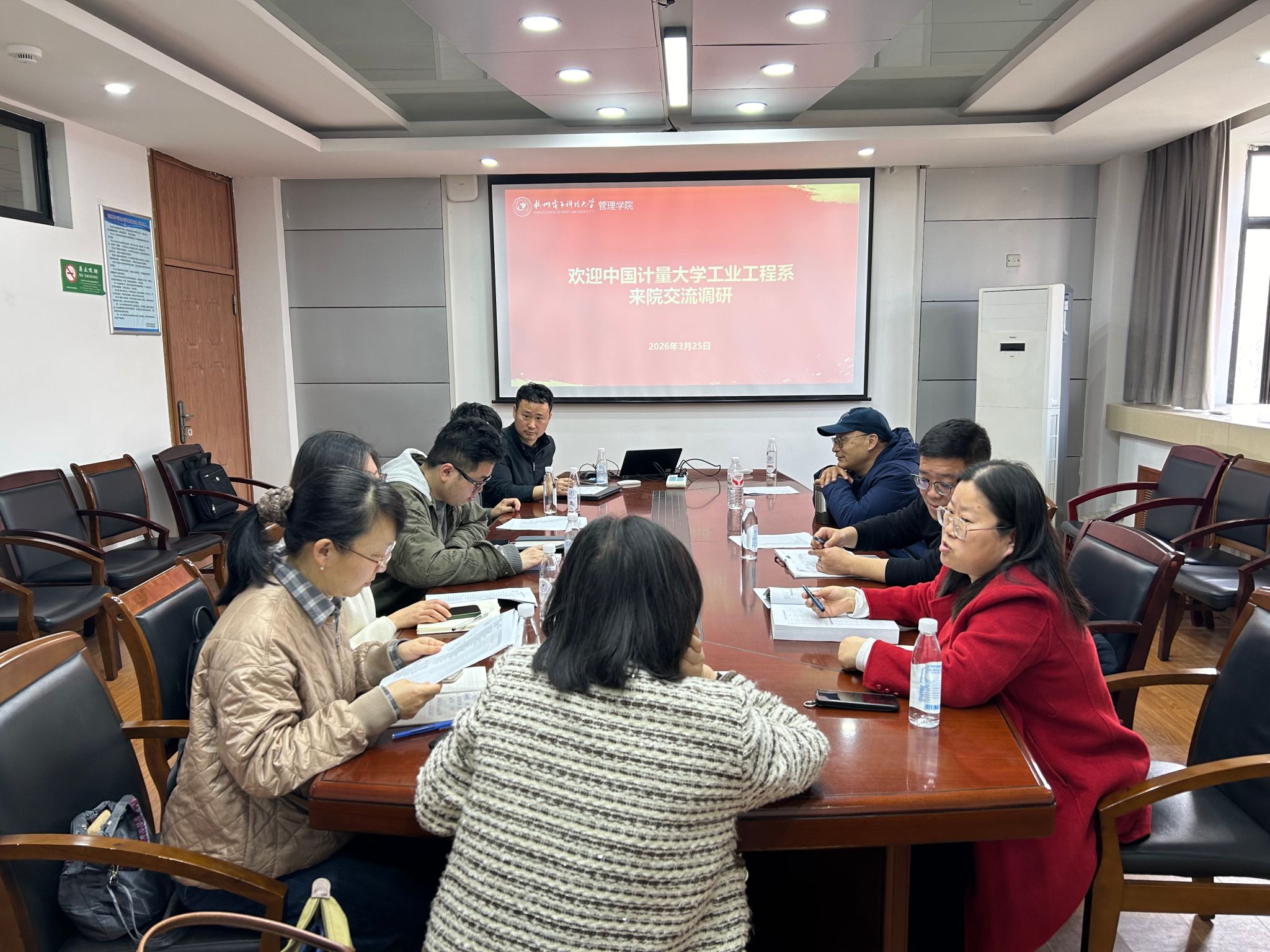为深入推进教育教学改革,全面提升人才培养质量,2026年3月25日下午2点,中国计量大学管理科学与工程学院质量管理工程研究所陈典红副教授携骨干教师一行6人,到访杭州电子科技大学管理学院,在第9教学楼402会议室开展新版培养方案交流研讨。